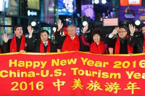 2016新年到來之際,來自世界各地的上百萬游客歡聚美國紐約時(shí)報(bào)廣場,慶祝跨年活動(dòng)。中國國家旅游局駐紐約旅游辦事處在時(shí)報(bào)廣場舉辦了2016“中美旅游年”主題宣傳專場活動(dòng)?!皶秤谓K 感受美好”旅游宣傳片也在紐約時(shí)報(bào)廣場同步滾動(dòng)播放,吸引了眾多游客特別關(guān)注。