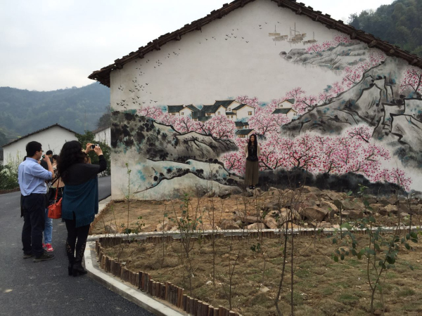 自2013年省旅游局啟動(dòng)快樂鄉(xiāng)村游活動(dòng)以來,內(nèi)容更豐富了,開始是以花為媒,推薦鄉(xiāng)村賞花觀葉的線路,現(xiàn)在還是以花為媒,把鄉(xiāng)村最美的的旅游元素——花(葉)畫在墻上。搭配宣傳鄉(xiāng)村美食,更有吸引力。麻城龜峰山書記洪俊波表示,龜峰山的旅游口號(hào)是“人間四月天,麻城看杜鵑”,其實(shí)龜峰山四季都值得游覽,即使不在花期,來爬爬山,吃吃吊鍋,品品墻繪,都是享受。羅田徐鳳沖村的村長說,“來我們村畫畫都是幾個(gè)年輕人,剛好畫的時(shí)候下了幾乎一個(gè)月的雨,村民們自發(fā)組織到山上砍毛竹做腳手架,為畫高層的墻繪提供幫助,熱情地招呼畫師到自己家吃住。這樣的好事我們村求之不得啊?!?