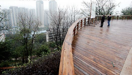 4個觀景平臺面積共4521平方米,由花崗巖或防腐木鋪裝,利用城市制高點,體現(xiàn)城市陽臺理念,游人可在公園內(nèi)飽覽紅巖村、嘉陵江及江北鴻恩寺盛景。