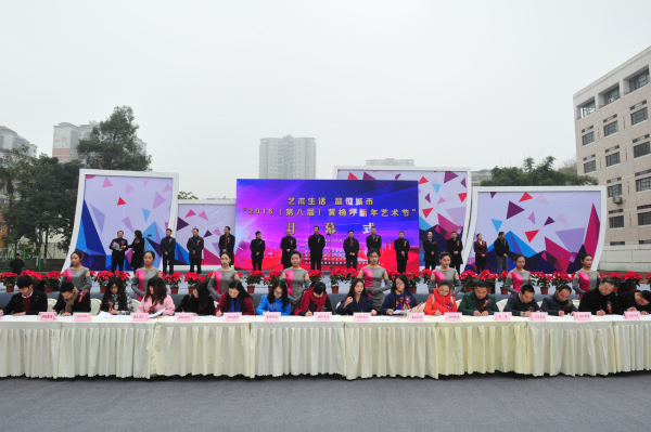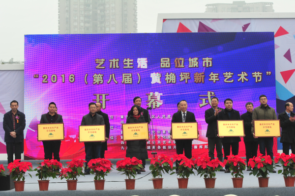 2015 年12月31日上午,2016(第八屆)黃桷坪新年藝術(shù)節(jié)在四川美術(shù)學(xué)院黃桷坪校區(qū)運(yùn)動(dòng)場(chǎng)盛大開(kāi)幕,重慶市旅游局局長(zhǎng)劉旗,重慶市文化委副主任雷平,四川美院黨委書記黃政、院長(zhǎng)龐茂琨,九龍坡區(qū)委書記丁洪,九龍坡區(qū)委副書記、區(qū)政府區(qū)長(zhǎng)石繼東,九龍坡區(qū)人大主任潘平,九龍坡區(qū)政協(xié)主席鄭和平,九龍坡區(qū)委常委、副區(qū)長(zhǎng)劉小強(qiáng),九龍坡區(qū)委常委、宣傳部長(zhǎng)王南,九龍坡區(qū)委常委、區(qū)委辦公室主任顏朝華,九龍坡區(qū)人大副主任曾熔,九龍坡區(qū)政府副區(qū)長(zhǎng)戎蓉,九龍坡區(qū)政協(xié)副主席孫夢(mèng)等領(lǐng)導(dǎo)和嘉賓出席了開(kāi)幕式。開(kāi)幕式由四川美院黨委副書記左益主持。