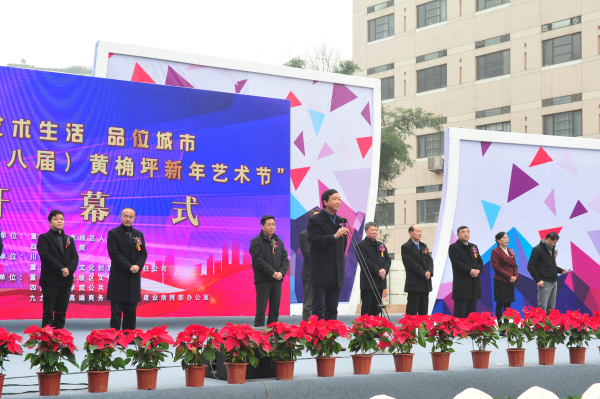 市旅游局長(zhǎng)劉旗宣布2016(第八屆)黃桷坪新年藝術(shù)節(jié)正式開(kāi)幕。